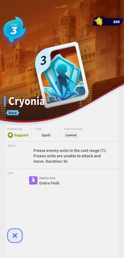 Cryonia [Cost = 3 – Empire – Spell – Support – Rare]