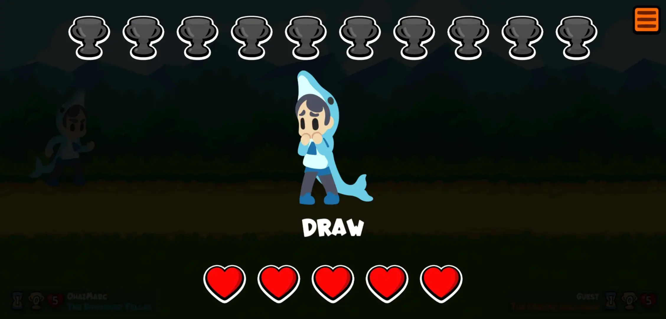 Your goal in the game is to win 10 trophies through battles whilst bearing a very limited pool of 5 lives. You only lose a life upon being defeated and you gain a trophy each time you win. With matches ending in a draw, you neither gain nor win anything—though, you will be given another chance to redeem yourself.