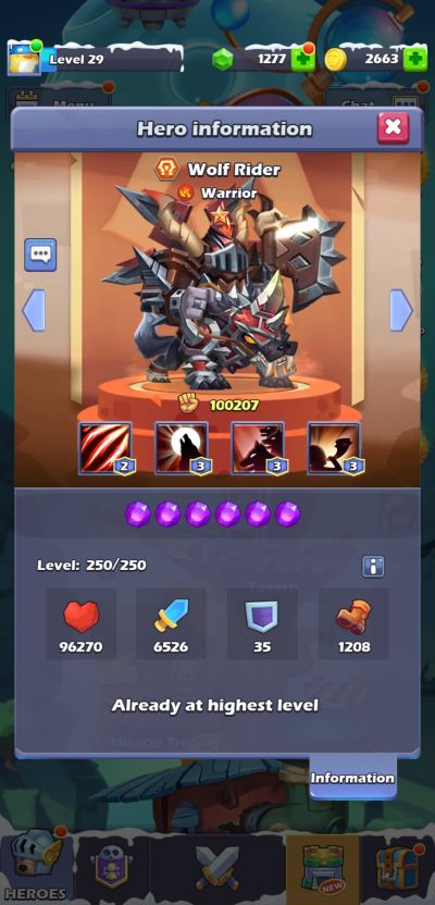 Wolf Rider’s Wolf Claw Sunder deals 150% of ATK as DMG to front row enemies with a 55% chance to stun them for 2 rounds and reduce DEF by 15 for 3 rounds.
