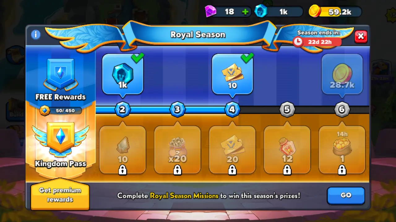 As you complete missions for the Royal Season (which you can see on the same screen as your other missions), your battle pass gains experience. Each time it levels up, you can collect some freebies, whether you’re using the free or paid pass!