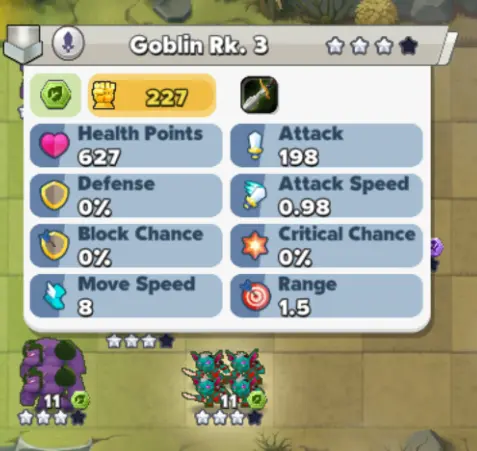 To the right of a unit’s profile in the Library are its Health and Attack stats, but if you want a more detailed look, you can tap the Stats button on the right to bring up a larger, more detailed readout.