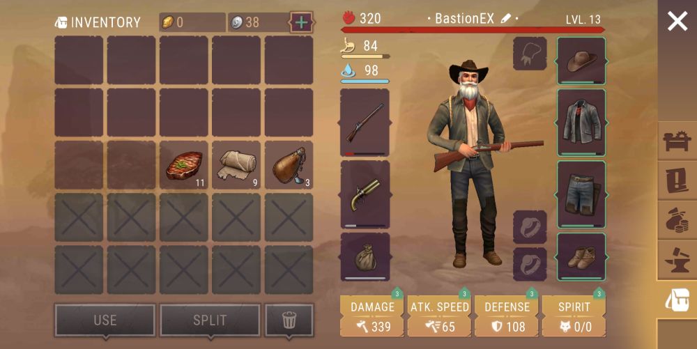 Westland Survival sets you on the role of a neophyte hero in the time of the Wild West, where bandits run rampant and nearly desolate surroundings hold plenty of surprises and threats. Beyond eliminating bandits and collecting bounties, you also have a shelter to maintain, improve, and protect. Hunting animals and collecting resources form part of your regular tasks and all the bandits, wild animals, and even dark spirits that you can encounter all pale in comparison with other survivors like yourself who may be out to take your hard earned resources.