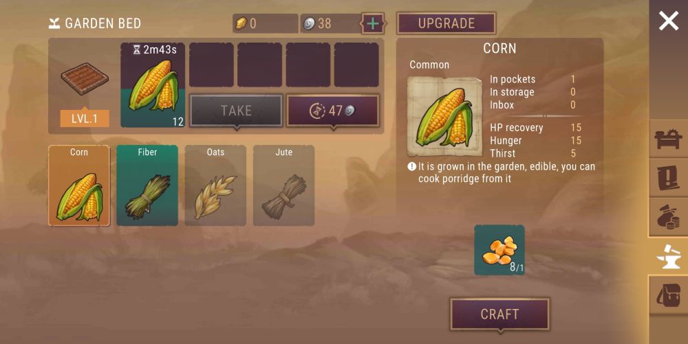 Westland Survival has plenty of workstations for you to create and upgrade, each with its own specific items to craft. You have a well that replenishes your supply of water, a bonfire that cooks your main source of food, a plot of land to plant seeds, and so on. Processes naturally take time to complete and while you can easily queue in multiple items for processing different ones have limited availability of slots for queuing.