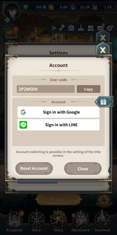 To reset your progress, click on the settings (gear) icon at the upper right side of the home or main screen. You can click on the account button, then hit the reset account button to wipe your data clean and start over. On the other hand, if you are ready to continue with your adventure, you can proceed to link your progress with your Google or LINE account. Note that this fast and convenient way of resetting applies to both Android and iOS devices.