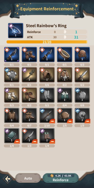 With this consideration, it is best to avoid reinforcing C and D level gears and be considerate for B grade ones as well. It may take a while to nab higher rarity gears but those types are definitely ones worth reinforcing. Note as well that hero classes can very much dictate the type of gear a hero can wear so only make upgrades to gears that are sure to be used by your main team members.