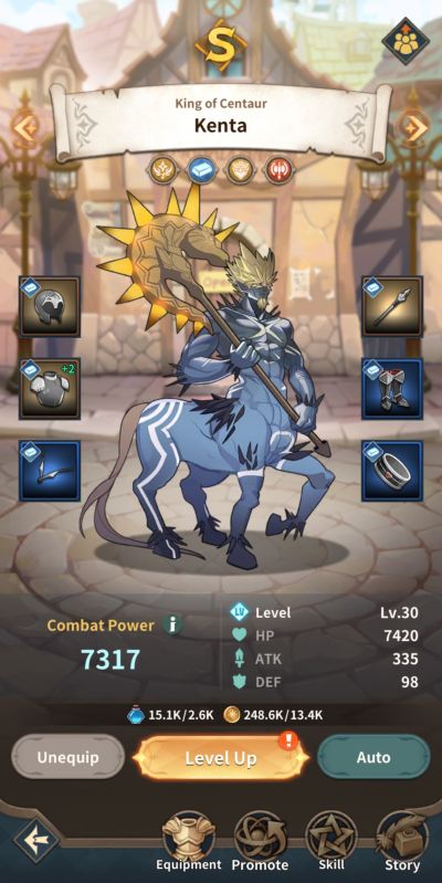 Upgrades also extend to a hero’s equipment and each hero can be equipped with 6 different types of gears. Gears also come with rarities and a gear’s rarity cannot be taken to the next level. Each piece of gear can be reinforced to increase its stats at the cost of sacrificing other gears.