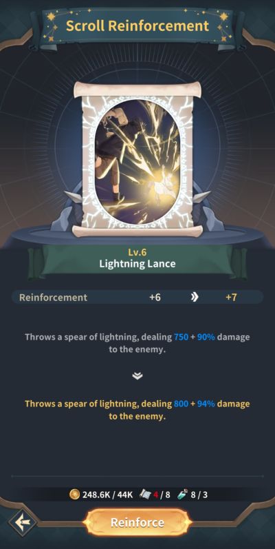 Though all the needed materials can be earned idly, you will still keep running out of them given the increasing amount of resources you need the higher the upgrade level goes. Considering that you can only carry 3 magic scrolls per battle, be sure to plan ahead on the magic skills you need the most before you begin to upgrade them. As a side note, make sure the magic scroll abilities you decide to bring along work in unison with the overall needs and strength of your team.